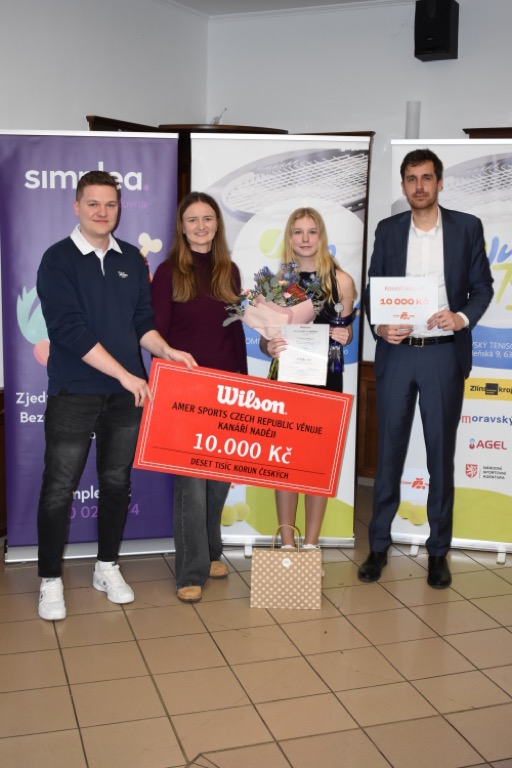 Vyvrcholením večera se stalo předání cen Kanáří naděje JmTS za rok 2025. Toto prestižní ocenění získali prostějovští talenti Tereza Vychodilová a Matyáš Maršík. Vítězné trofeje, finanční prémie a věcné dary převzali z rukou Barbory Krejčíkové, zástupců společnosti Wilson a předsedy JmTS Jana Macharáčka.